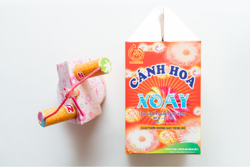 Pháo hoa – Giàn phun hoa là một loại pháo hoa không gây tiếng nổ. Khi phát hỏa, từng ống phóng lên tạo hiệu ứng thân bông hoa, khi lên hết tầm cao thì nở ra bông hoa với nhiều màu sắc khác nhau (xanh, đỏ, tím, vàng,…).